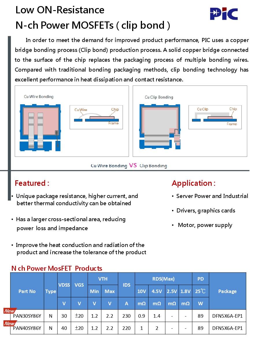 PIC Low ON-Resistance N-ch Power MOSFETs(clip bond)